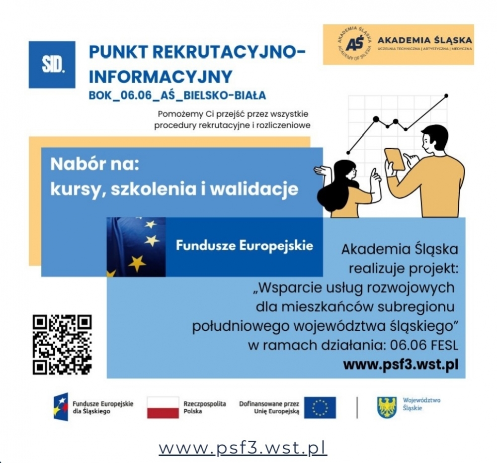 Akademia Śląska w partnerstwie z Cechem Rzemieślników i Innych Przedsiębiorców w Wodzisławiu Śląskim realizuje projekt: „Wsparcie usług rozwojowych dla mieszkańców subregionu południowego województwa śląskiego”.