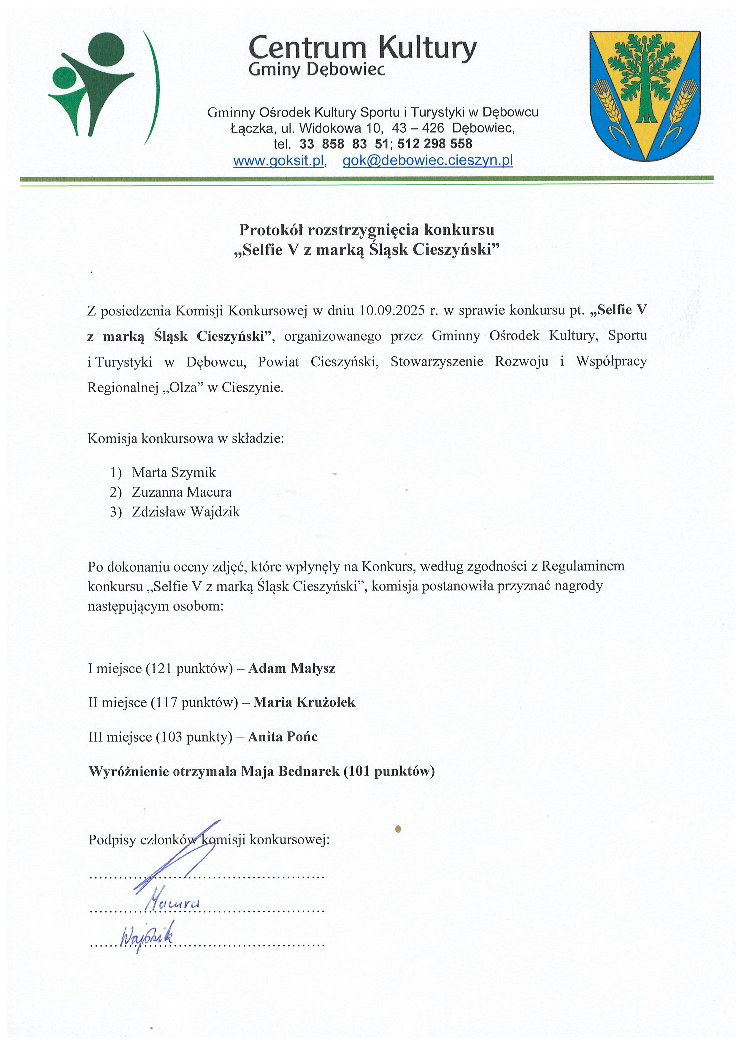 - Protokół konkursu "Selfie z marką Śląsk Cieszyński 3